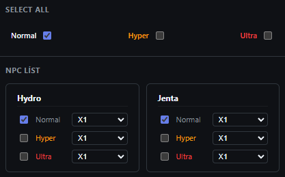 - NPC; seçilen Tür, Kademe ve Cephane ile öldürülür.